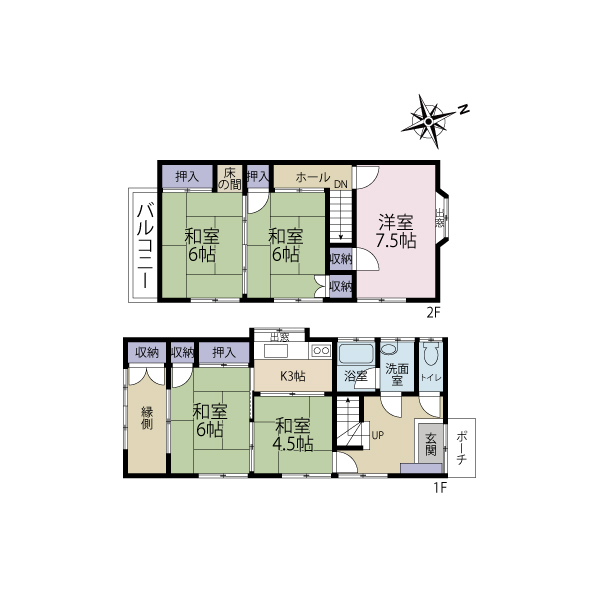 部屋数豊富な2階建て6K!