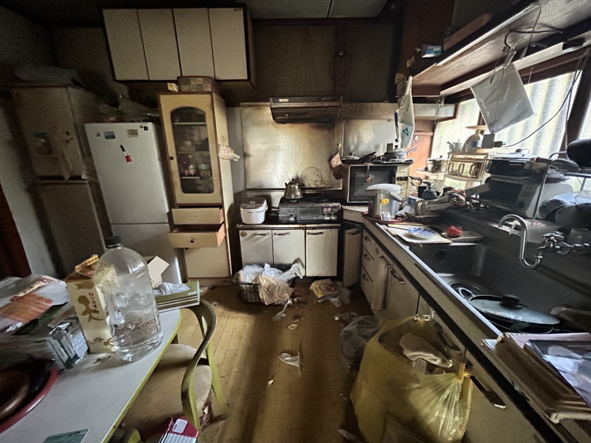 損傷箇所が酷く残置物もありましたが、すべて現況のままお引き受けしております。